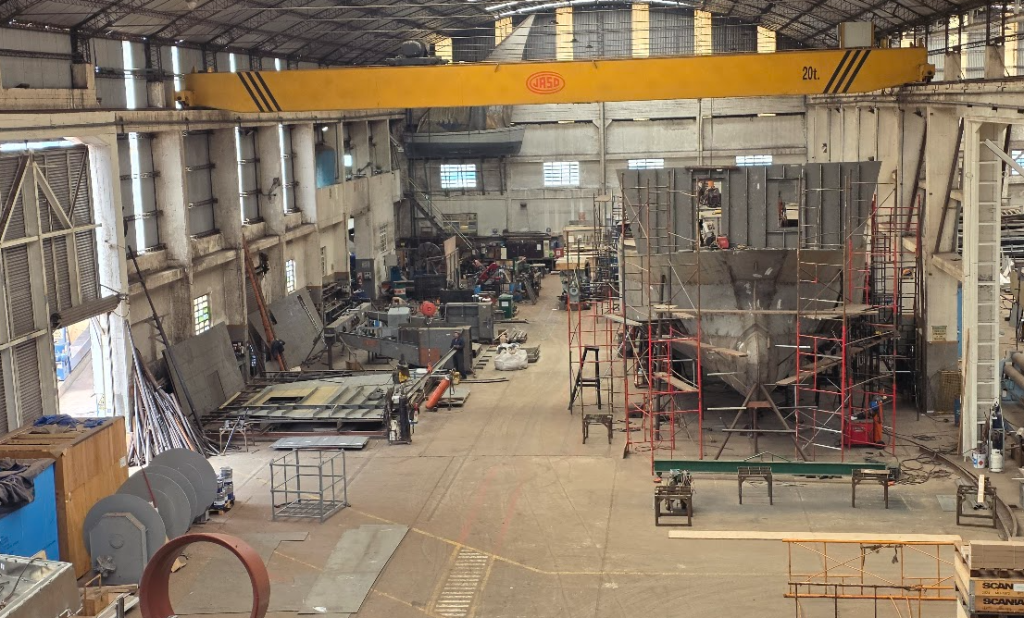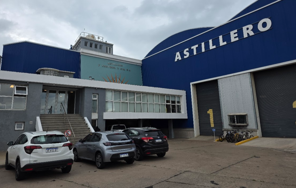 El recorrido por el astillero mostró una estructura que no se sostiene solo con memoria. Contessi repasó ampliaciones recientes: en 2019 se sumaron 900 m² de galpones; y en 2024 se inauguró una nave industrial capaz de construir buques de hasta 85 metros de eslora. Sin embargo, la paradoja es brutal: la nave nueva quedó vacía.