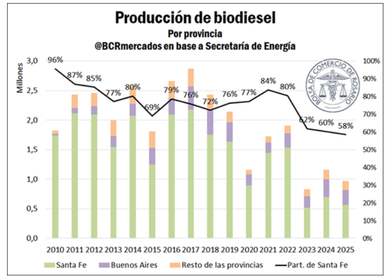 En términos de divisas, el retroceso también es significativo. Mientras que años atrás el biodiesel era un generador constante de dólares frescos para las reservas del Banco Central, la participación decreciente de la exportación en el mix de ventas ha erosionado ese aporte. En 2025, la provincia sufrió las consecuencias de un mercado más pequeño, donde incluso la recuperación del consumo de combustibles fósiles no arrastró al biodiesel, sino que lo dejó rezagado debido a la baja proporción de mezcla permitida por la ley actual. Esto genera una paradoja ambiental: mientras el mundo discute la descarbonización de la economía, Argentina y sus principales compradores aplican normativas que terminan favoreciendo el uso de combustibles fósiles en detrimento de alternativas renovables y locales.