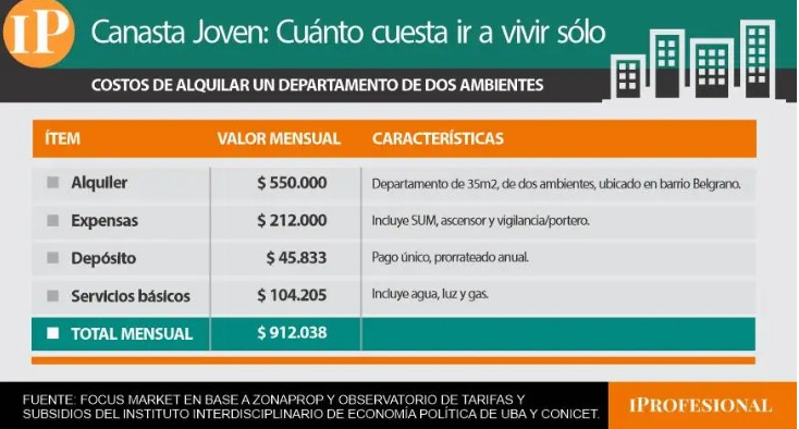 Sumando todos estos rubros, el costo mínimo para independizarse supera los 2 millones de pesos por mes.