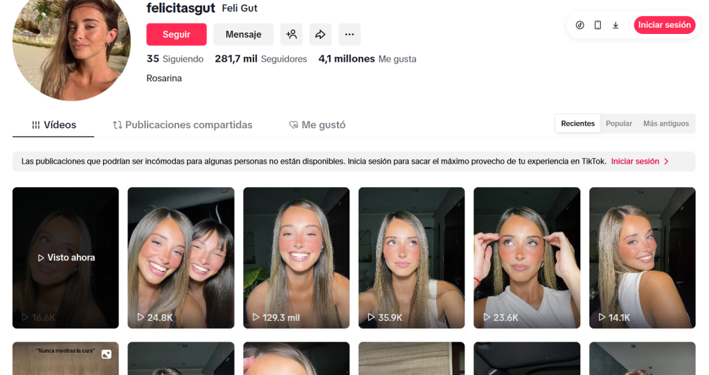 El impacto del video no es menor si se tiene en cuenta el alcance de Felicitas en redes. Felicitas Gut cuenta actualmente con más de 250 mil seguidores en TikTok y supera los 4 millones de “me gusta” acumulados en la plataforma, lo que explica la rápida viralización del contenido y la lectura inmediata que hicieron los usuarios del mensaje. En cuestión de horas, el posteo se multiplicó en comentarios, reacciones y análisis, consolidando a la influencer sanlorencina como una voz con peso propio dentro de la conversación digital, aun cuando elige no hablar de manera directa.