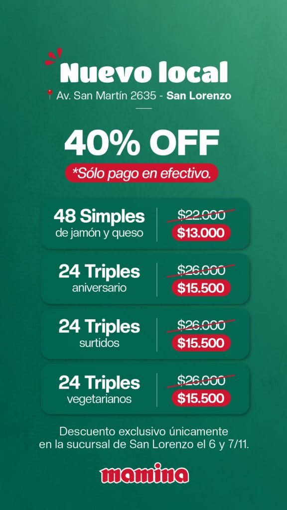 La reconocida cadena de sandwicherías Mamina sigue creciendo y este miércoles celebró la inauguración de su local número 13, ubicado en San Martín 2635, pleno centro de San Lorenzo.