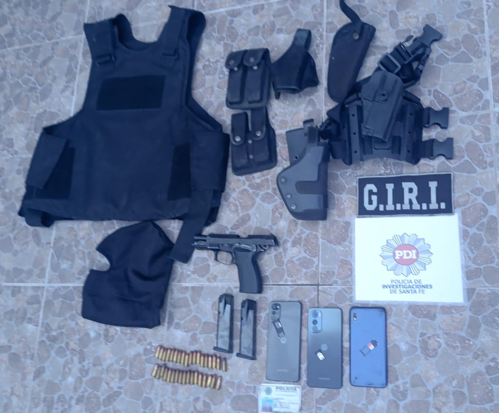 Quienes realizaron el allanamiento, presentaron documentación falsa, sustrajeron dinero de la empresa y se dieron a la fuga en un vehículo. Por datos aportados se llega a la identificación de dos personas pertenecientes a este grupo y se ordena su detención, secuestrando en la detención ropas con características similares a las aportadas, armas y dinero en efectivo.