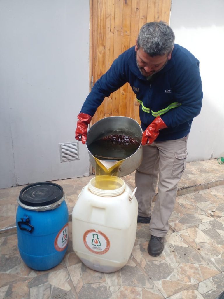 La compañía mantiene más de 140 convenios con municipios y cuenta con 430 puntos verdes activos, para que los pequeños generadores, es decir, las personas que producen este residuo en sus hogares, también puedan sumarse al programa. El procedimiento es simple: solo deben separar el aceite usado en una botella plástica limpia y seca, dejarlo enfriar completamente antes de envasarlo y acercarlo al punto verde más cercano. En esos sitios, el residuo es acopiado de manera segura y posteriormente retirado por los recolectores certificados de DH-SH, que lo destinan al circuito de reciclado para su transformación en biocombustible.