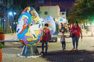 Pascuas: artistas, niños y vecinos pintaron huevos gigantes