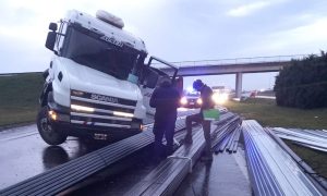 San Lorenzo: camión volcó toneladas de hierro en plena autopista