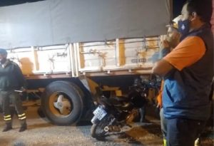 Una moto acabó su carrera debajo de un camión en Puerto San Martín