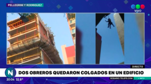 Cedió el andamio y quedaron colgando en el aire de un 7º piso