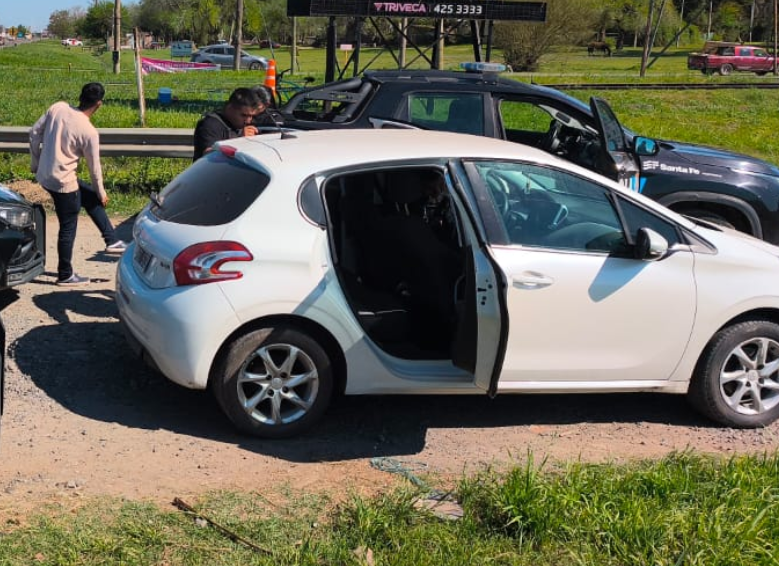 En el interior del vehículo se encontraban Cristian Darío A., de 41 años, y Ángel Gustavo M., de 32 años, quienes quedaron aprehendidos. Al verificar los datos del Peugeot 208 en el sistema, se constató que pesaban sobre él dos pedidos de secuestro vigentes: uno fechado el 26 de julio de 2025 en Esperanza (UR XI, carátula “Daños”), y otro del 30 de agosto de 2025 en Cañada de Gómez (2ª Circunscripción, carátula “Robo”), ambos con intervención de las fiscalías correspondientes.
