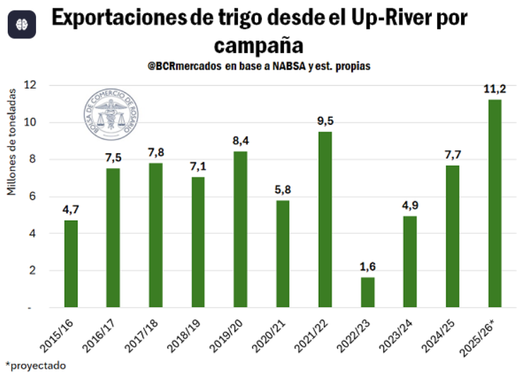 El dato adquiere aún más relevancia si se observa la tendencia histórica. El gráfico de exportaciones desde el Up River por campaña muestra cómo el volumen proyectado para 2025/26 supera ampliamente a los registros de los últimos años . El sistema vuelve a operar al límite de su capacidad.