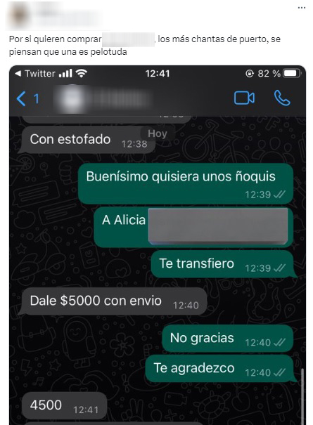 Un desopilante escrache a un conocido bar de Puerto San Martín se volvió viral en la red social Twitter. Una enojada clienta publicó la conversación con una captura de pantalla en sus cuentas. El conflicto estalló por una diferencia de 500 pesos en el pedido de viandas. “Los más chantas de Puerto, se piensan que una es pelotuda”, fustigó Leilén.